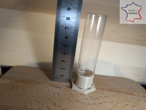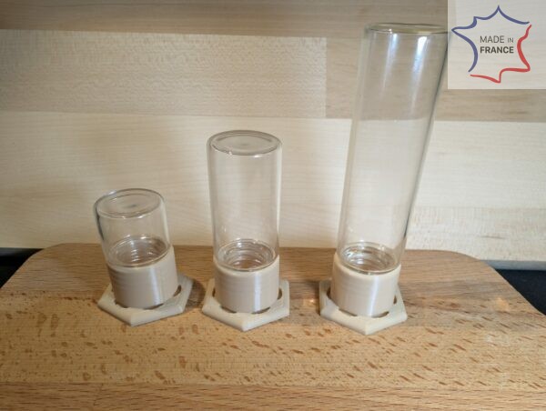 Rien que du très classique ici : un abreuvoir de 20ML avec un flacon en verre.