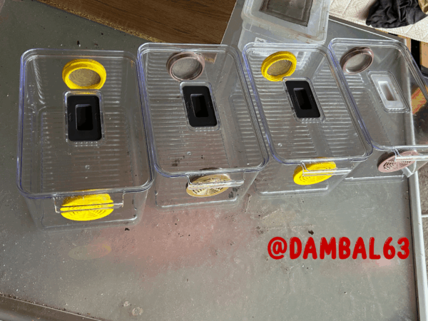 Voici une grille pour ajouter une entrée d’air aux bacs d’élevage de vos isopodes ou insectes nourriciers. Il suffit d’ajouter une grille micromaillée pour pouvoir également l’installer à vos fourmis 🙂